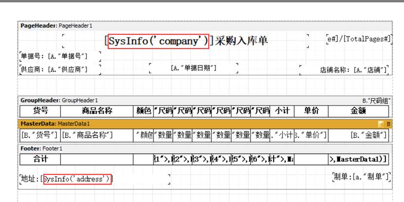 报表设计器有一个自定义函数,可以获取当前单位的名称,地址,注册电话等信息